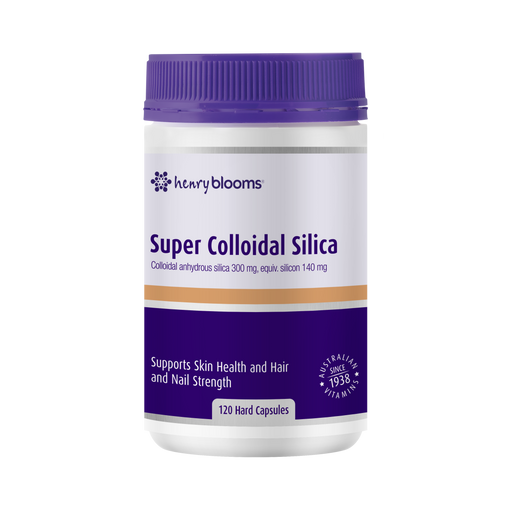 Henry BloomsIn stockSuper Colloidal Silica 120 vegetarian CapsulesSupports Skin Health and Hair and Nail Strength Henry Blooms Super Colloidal Silica helps:✓ Maintain ...