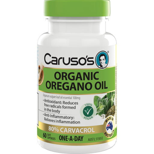 Caruso'sIn stockCaruso's Organic Oregano Oil is made with certified organic Origanum vulgare (Oregano) essential oil, which is standardised to contain a minimum of...