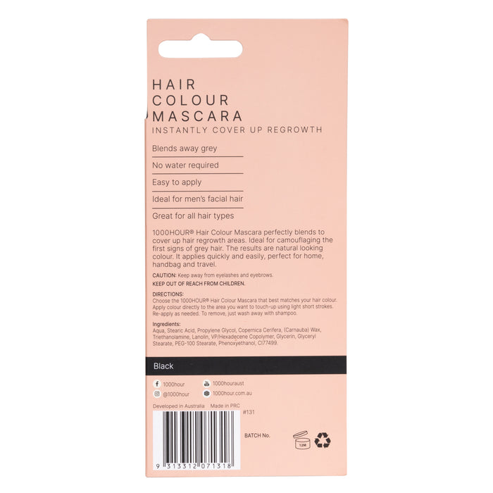 Instantly Cover Up Regrowth. 1000HOUR ® Hair Colour Mascara perfectly blends to cover up hair regrowth areas. Ideal for camouflaging the first signs of grey hair. The results are natural looking colour. It applies quickly and easily, perfect for home, handbag and travel.