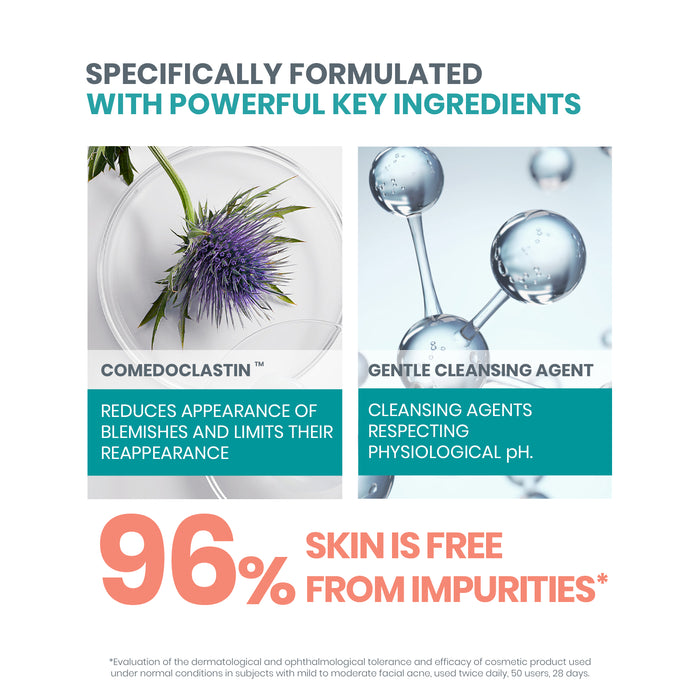 This soap free cleanser purifies the skin, gently removes makeup, can be used on backne, and can be used as a shaving gel for men with oily skin. Clinically proven to reduce blemishes and blackheads, this biodegradable formula leaves the skin clean, clear and mattified.