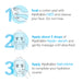 • The larger size of high-molecular-weight hyaluronic acid forms a protective barrier on the surface of the skin to hydrate from the outside and prevent excess water loss.