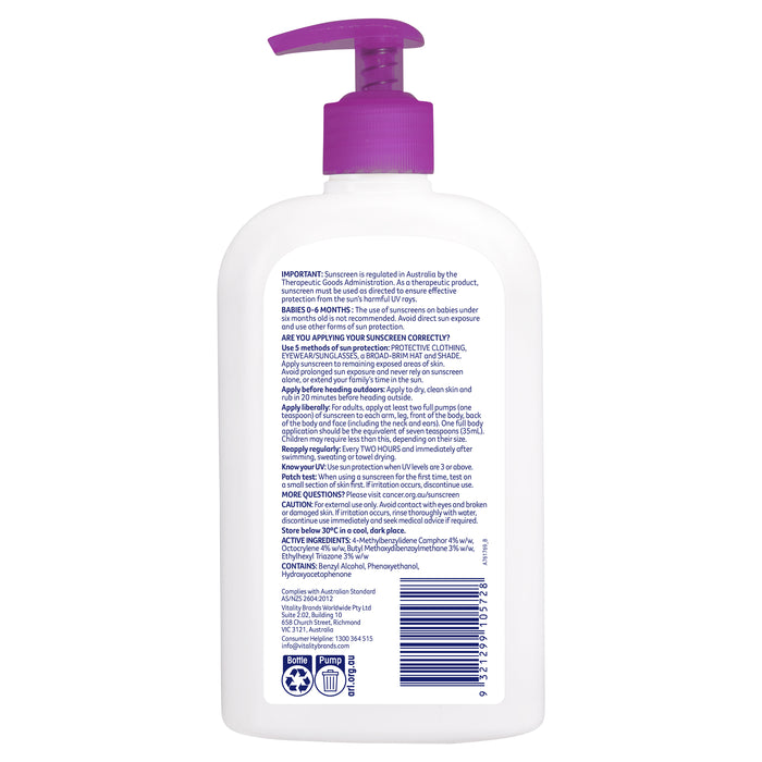 Tested for 4 hours water resistance. Cancer Council recommends reapplying every 2 hours.