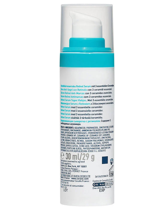 Developed with dermatologists, CeraVe Resurfacing Retinol Serum for post-blemish dark spots and pores is formulated to be gentle yet effective. Enriched with three essential ceramides, soothing niacinamide, encapsulated retinol , and liquorice root extract that helps with uneven skin tone and texture by reducing the appearance of post-blemish marks, reducing the appearance of pores, and improving overall radiance for a healthy-looking complexion. This serum for post-blemish marks and hyperpigmentation is suitable to all skin types, however,is best used on mild acne-prone, combination and oily skin types. We recommend using our Resurfacing Retinol Serum daily , to be able to optimise benefits of the product. Always ensure you wear a broad-spectrum sunscreen in the daytime when using retinol as it may increase sun sensitivity of the skin. If discomfort occurs during the first application, space out applications until skin adjusts.