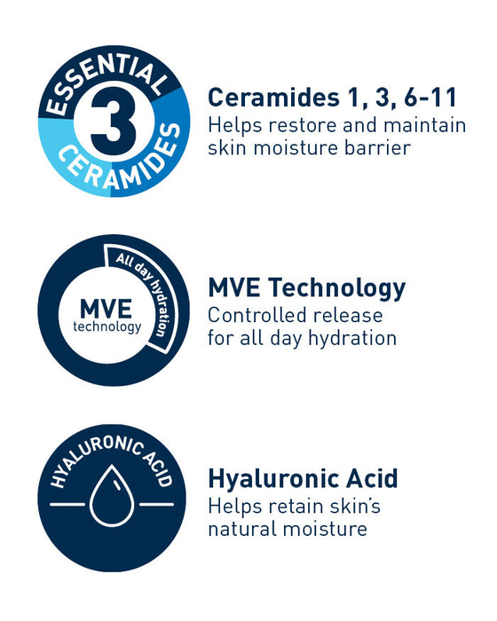 MVE Technology: This patented delivery system continually releases moisturising ingredients for 24-hour hydration