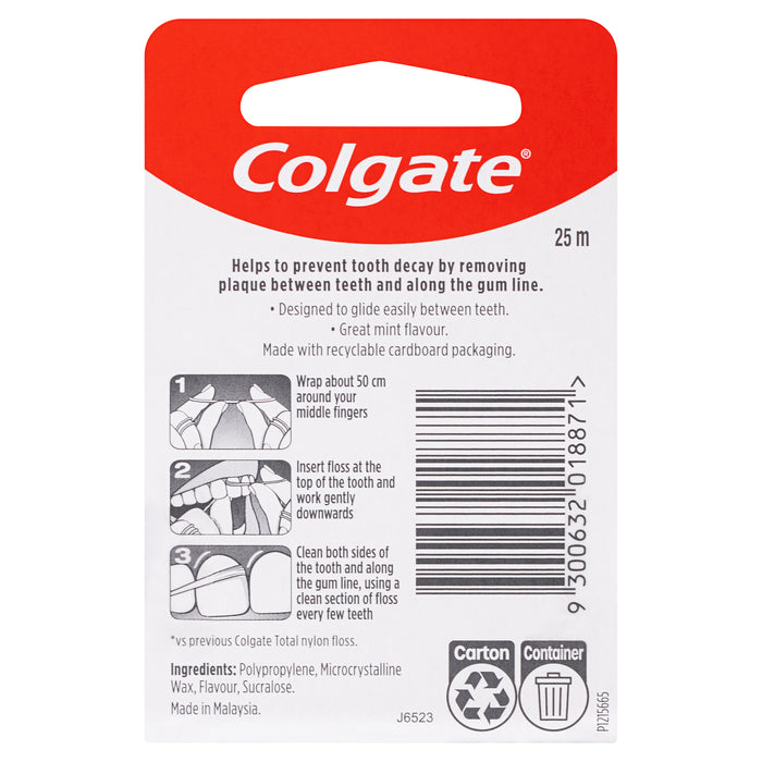 Freshen your mouth with the Colgate Total Mint Waxed Dental Floss in a Mint Flavour for improved mouth health.