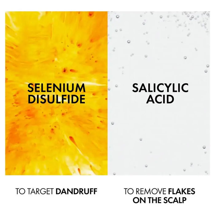 A shampoo that acts against dandruff with a deep cleansing formula for normal to oily hair. It targets visible dandruff from the first use and offers a 6-week anti-relapse action for long-lasting dandruff control and scalp comfort. The unique formula contains dermatologically active ingredients: Selenium disulfide and salicylic acid, which are scientifically proven to treat dandruff effectively. Selenium disulfide specifically targets the root cause of dandruff, while salicylic acid helps to exfoliate the scalp, clearing away dead skin cells and reducing flakiness.