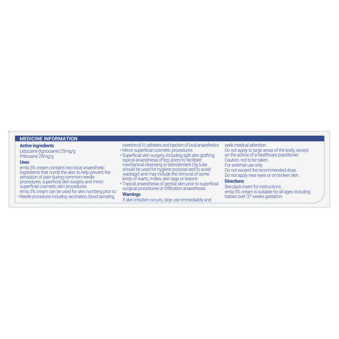 Emla can be used for common needle procedures, superficial skin surgery and minor superficial cosmetic skin procedures