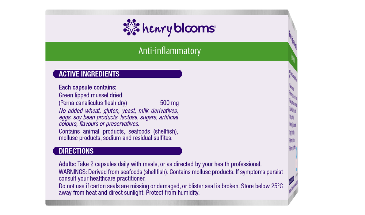 Experience the natural mussel power of Henry Blooms Green Lipped Mussel for optimal joint health support.