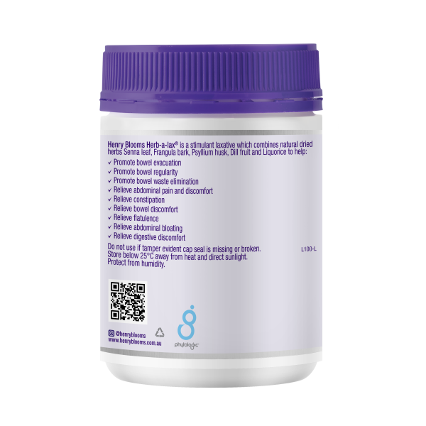 Henry Blooms Herb-a-lax® is a stimulant laxative which combines natural dried herbs Senna leaf, Frangula bark, Psyllium husk, Dill fruit and Liquorice to help: