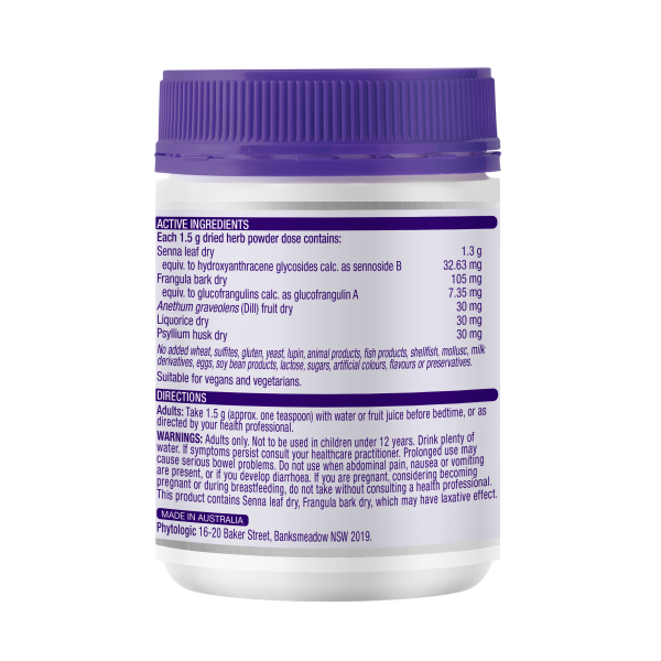 Adults only. Not to be used in children under 12 years. Drink plenty of water. If symptoms persist consult your healthcare practitioner. Prolonged use may cause serious bowel problems. Do not use when abdominal pain, nausea or vomiting are present, or if you develop diarrhoea. If you are pregnant, considering becoming pregnant or during breastfeeding, do not take without consulting a health professional.