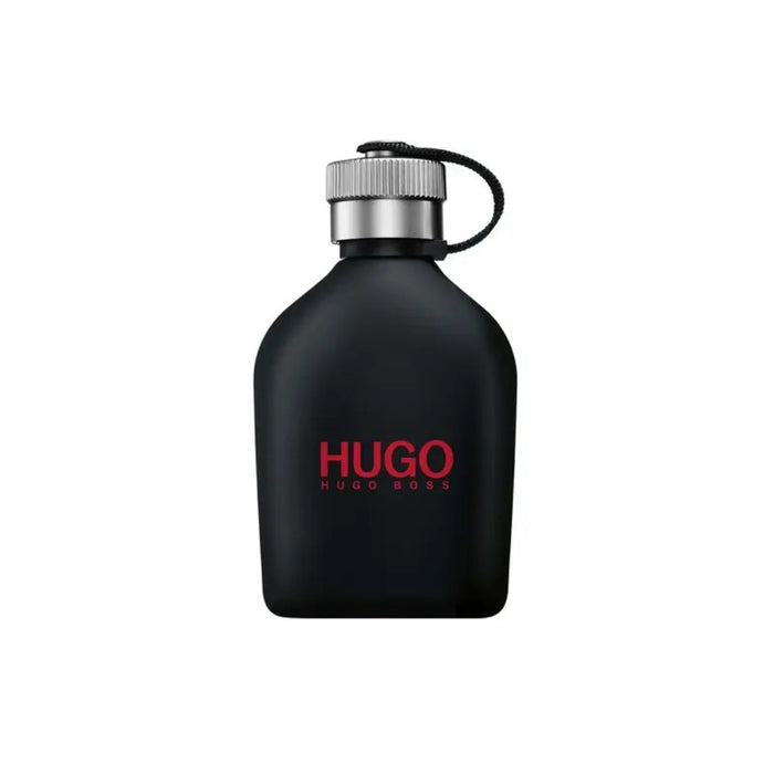 HUGO Just Different Eau de Toilette is presented in a sleek black flask, modernized with a new oversized logo.