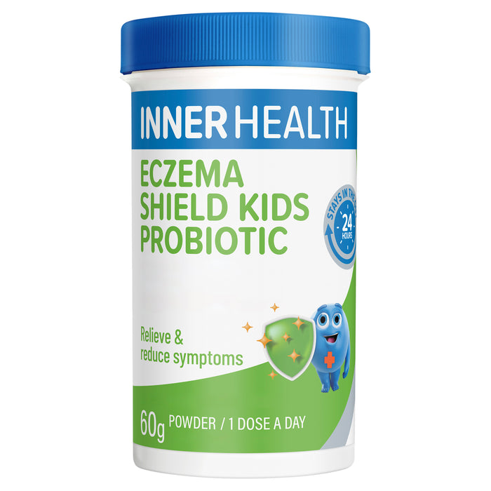 Eczema can be linked to low Vitamin D levels in children. When sun exposure is limited, Inner Health Eczema Shield Kids helps reduce the occurrence of eczema & allergy symptoms such as itching and supports skin health, healing & repair.