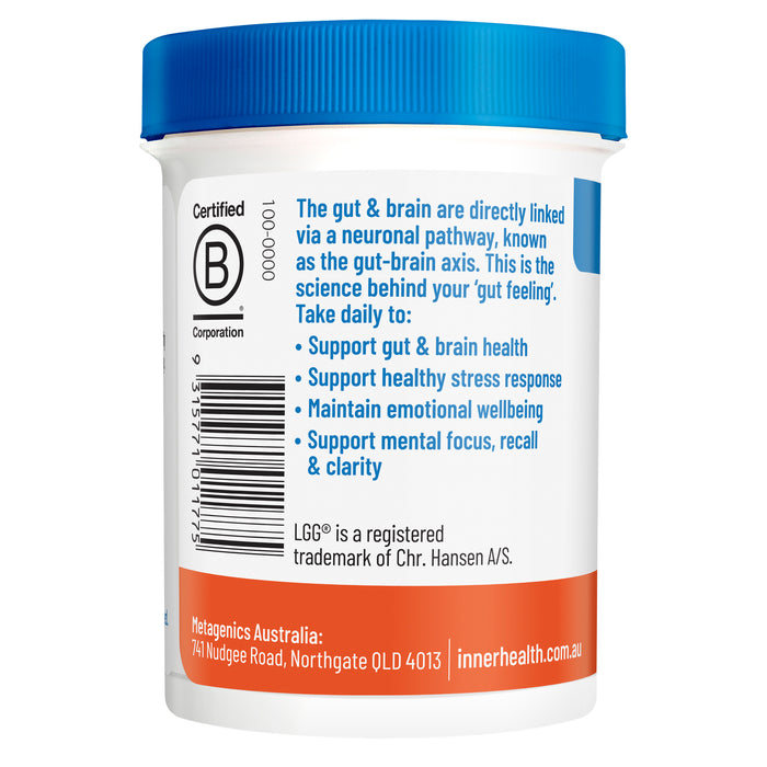 Taking Neuro Balance daily supports gut & brain health, maintains emotional wellbeing, and supports mental focus, clarity & recall with targeted probiotic strains LGG® and 299v.