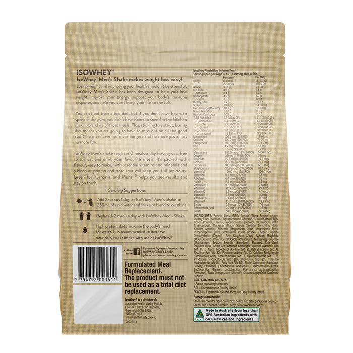 Weight loss doesn't have to be hard, it doesn't need to mean hours spent in the gym, bland tasteless meals and the death of your social life. We have packed every IsoWhey Men's Shake with 30g of pure Australian Whey Protein, fibre, fat burners and essential vitamins and minerals to give you a complete meal that's easy to make and satisfying to take.