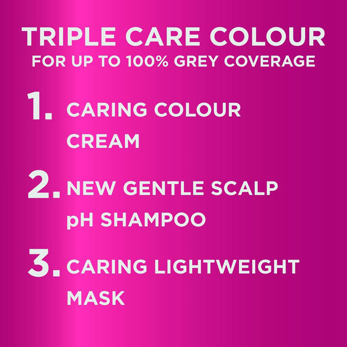 100% grey coverage from root to tip. L'Oreal Paris Excellence Crème gives you a rich, deep, natural and even colour available in a wide spectrum of shades. Our reformulated 3 step system ensures your hair will be left with impeccable grey cover, superior strength and replenished like never before. The protective colouring cream is enriched with Pro-Keratin for long lasting colour and strengthens hair. The new caring post-colour shampoo delicately cleanses the scalp and balances your scalp pH level for less irritation. Complete yout routine with the new lightweight nourishing mask for shiny, soft and lively hair.