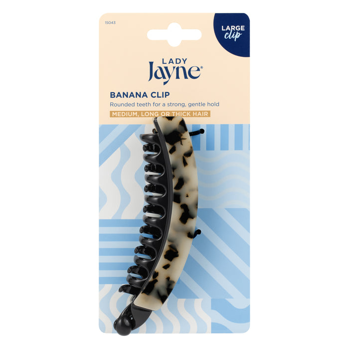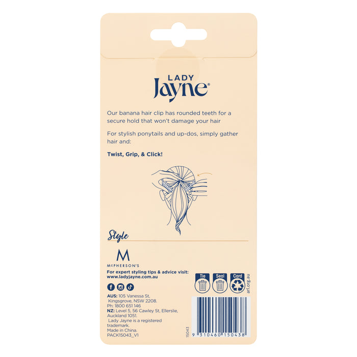The Lady Jayne Banana Clip offers a secure, slip-free hold with rounded teeth that help prevent damage to the hair. This small clip size is perfect for medium or long hair lengths, or thicker hair types.