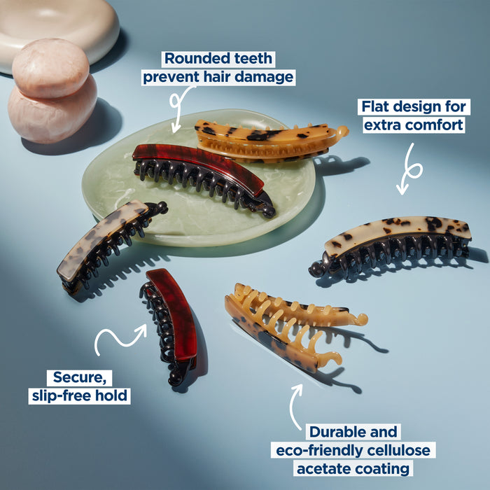 Provides a secure, slip-free hold with rounded teeth to prevent hair damage.