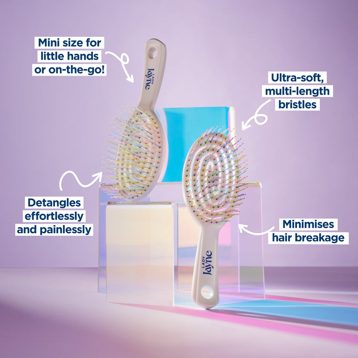 Looking for pain-free brushing? Say hello to the Lady Jayne GemTip Unicorn Detangler! Its soft bristles glide through hair with ease, delicately but effectively eliminating knots and tangles.