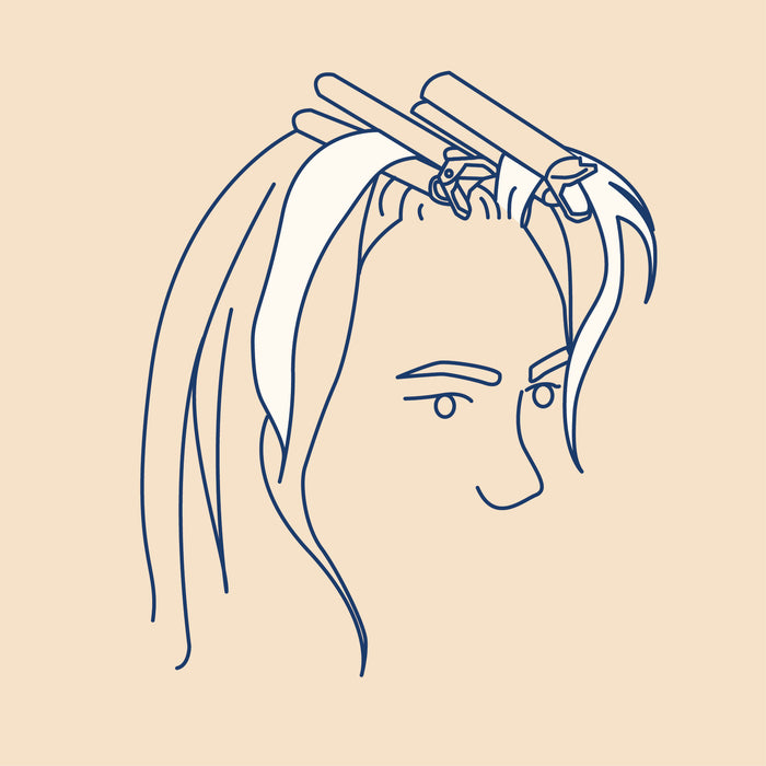 1. To achieve volume, clamp clips as close to the roots as possible where you desire volume. Let sit for 10-20 minutes. Open clip and pull toward the ends of hair to remove. 2. For curling, clamp the ends of the desired hair sections and roll up. Let it sit for 10-20 minutes, then remove the clips and enjoy your voluminous and curly hair all day.