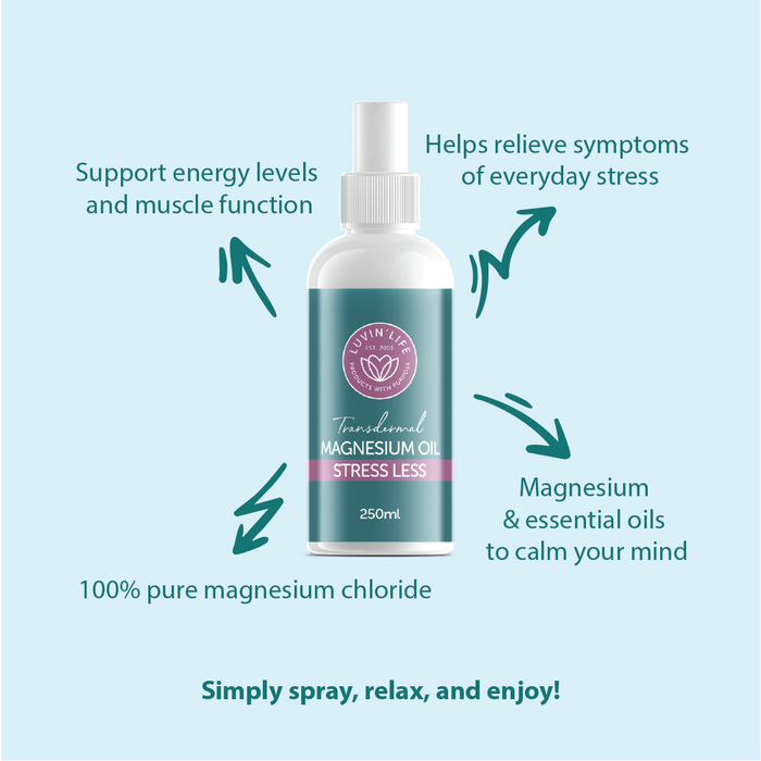 Made using 100% pure magnesium chloride and infused with Luvin Life Stress Less Essential Oil.