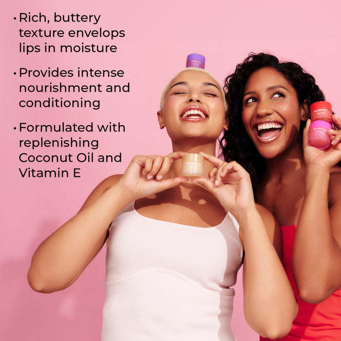 MCoBeauty OVERNIGHT LIP MASK does all the work while you can catch up on your beauty sleep. This rich, butter-like hybrid lip mask is deeply nourishing, acting as a protective barrier against dryness and chapped lips. Formulated with Coconut Oil and Vitamin E to help hydrate, smooth and soften lip lines for a fuller and plumped-up looking pout. Apply during the day as a balm for hydrated, healthy looking lips or to prepare your pout for your favourite MCoBeauty lip product. Double up on application before bed, for a deeply nourishing and conditioning lip treatment. Deliciously scented, you will want to apply this product all day and all night!QUICK FACTS:A LIP BALM FOR DAY, A LIP MASK FOR NIGHTAWAKEN WITH SOFTER, NOURISHED LIPSLOCKS IN MOITSURE FOR LONG-LASTING HYDRATIONHELPS TO REDUCE DRY FLAKY LIPS