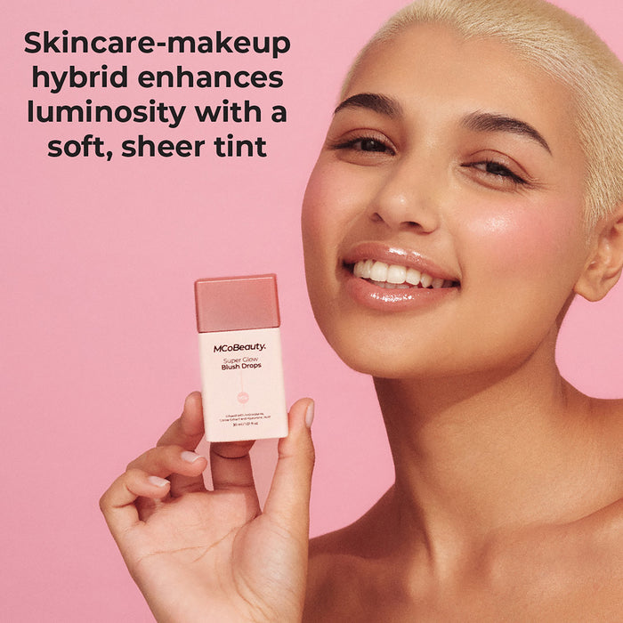 MCoBeauty SUPER GLOW BLUSH DROPS are designed to instantly warm and illuminate your complexion, boosted with supportive skin-loving ingredients. Buildable and effortlessly adaptable, this skincare-makeup hybrid enhances your skin's natural glow, allowing you to tailor the intensity of colour over your foundation or on bare skin, for a no-makeup, makeup look. This antioxidant rich formula is infused with Jojoba Seed Oil, White Tea Extract and Cocoa Extract to become one with skin. Improving your skin's health has never been easier.QUICK FACTS:BLUSH MEETS SKINCARENOURISHES AND PROTECTS SKIN BARRIERSKIN TONE IS RE-ENERGISED WITH A UNIVERSALLY FLATTERING TINTED WASH OF COLOURCUSTOMISABLE DROPS WHICH CAN BE WORN ALONE OR MIXED WITH YOUR FAVOURITE MCOBEAUTY SKINCARE