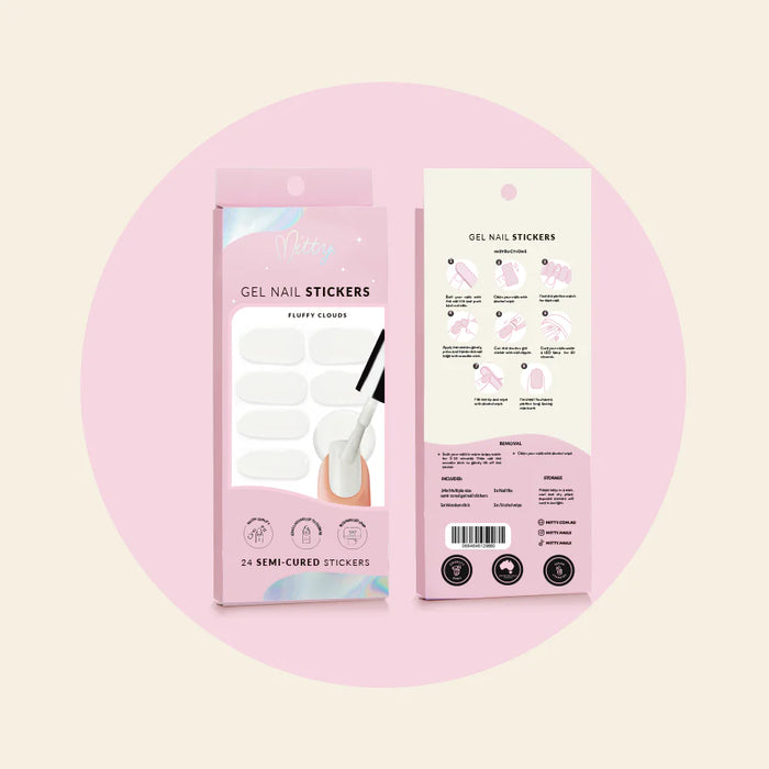Mitty Semi-cured gel nail stickers are crafted with genuine liquid gel, pre-set at 60% completion. These flexible, self-adhesive strips conform seamlessly to nails of various shapes and sizes. Following application, a brief exposure of just 60 seconds under a LED lamp achieves full 100% curing, ensuring a salon-quality finish.