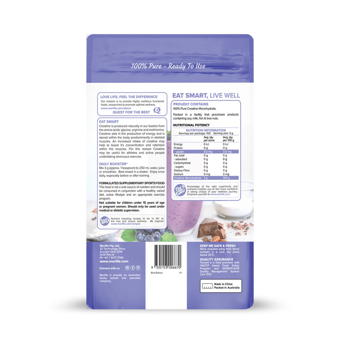Morlife 100% Pure Creatine Unflavoured 300g