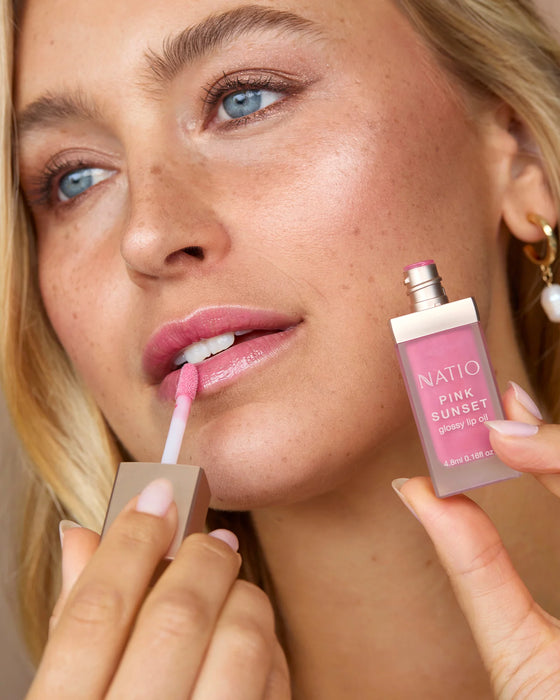 For a gorgeously hydrated look, coat lips with a glossy sheen of flattering sunset-pink tinted oil. Featuring a blend of nourishing Jojoba, Coconut and Grapeseed Oils teamed with antioxidant Vitamin E, this hydrating hybrid lip gloss oil conditions as it colours, leaving lips shiny, plumped and perfectly pink. Vegan friendly.