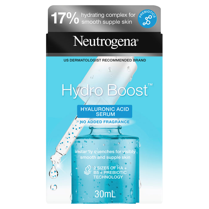 Neutrogena® Hydro Boost Hyaluronic Acid Serum features our unique formula with bursting hyaluronic pearls delivering our most concentrated hydrating serum yet. Infused with glycerin that delivers moisture 9 cell layers deep into the outer layer of the skin, to reveal smooth and supple skin.