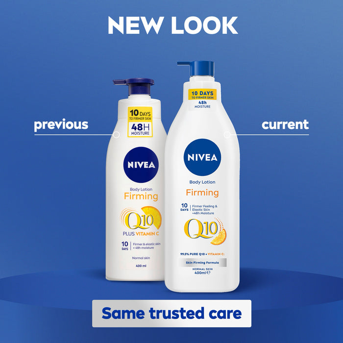 NIVEA Q10 Firming Body Lotion with Vitamin C, noticeably firms the skin and improves elasticity in 10 days. The lotion's light texture is ideal for normal skin and now in a pump action bottle, it is perfect for easy, everyday application. This fantastic formula, containing skin's own coenzyme Q10 and Vitamin C, moisturises skin for 48 hours. This provides you with a long-lasting soft touch and leaves your skin feeling more energised. NIVEA cares for your skin and planet. New improved bottle with reduced plastic vs. before / 50% recycled plastic bottle (without pump). Ingredient listings for our products might change over time with new innovations. Whilst we try to update this as quickly as we can, it’s best to check the ingredients on your packaging to ensure it’s suitable for your needs.