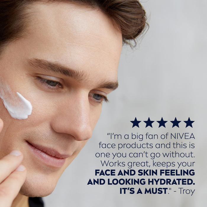NIVEA MEN Protect & Care Moisturiser SPF15 with Aloe Vera & Pro-Vitamin B5 immediately moisturises your skin and replenishes your skin’s moisture level. The formula with Aloe Vera and Provitamin B5 cares for your skin and protects it from external influences that cause dryness. The face care soothes and regenerates your skin. It is non-greasy. In addition, the SPF15 helps to protect your skin from the sun and against harmful UVA and UVB rays. The skin compatibility of this moisturising face cream has been dermatologically approved. The cream is real life proven to immediately moisturise and to protect your skin. For ultimate skin comfort.