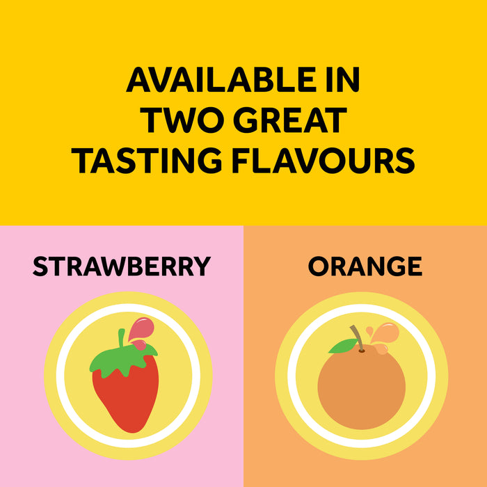 It’s sugar free and colour free, comes in pleasant strawberry and orange flavours, and each bottle comes with an easy-to-use dosing syringe.