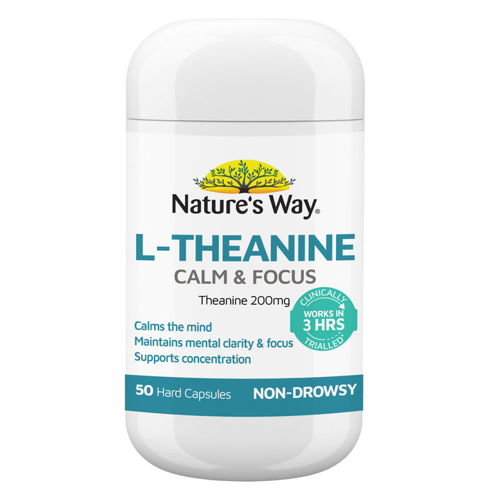 Nature’s Way L-Theanine Calm & Focus helps maintain emotional wellbeing while supporting cognitive function and concentration.