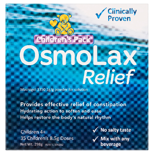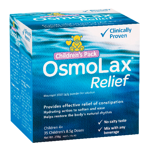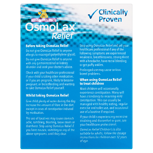 When mixed your child's favourite drink of choice, flavour-free OsmoLax Relief works with the liquid to soften and ease, typically resulting in a more controlled bowel movement within 1-3 days.