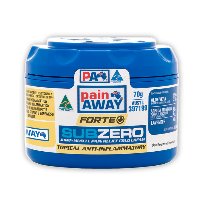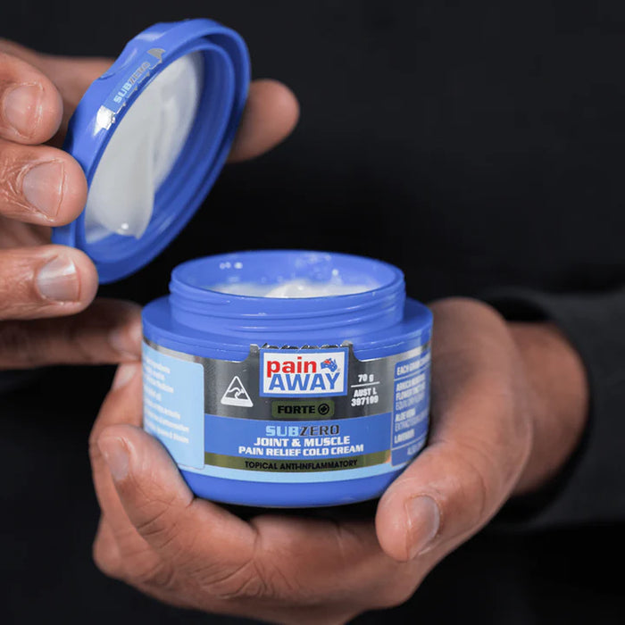 Unlock the benefits of cold therapy and enhance muscle recovery with Pain Away SubZero mild joint & muscle pain relief cream. Formulated with our SubZero Cooling Complex, this invigorating cream delivers a cooling sensation directly at the site of application for the relief of muscles and mildly sore and aching joints.
