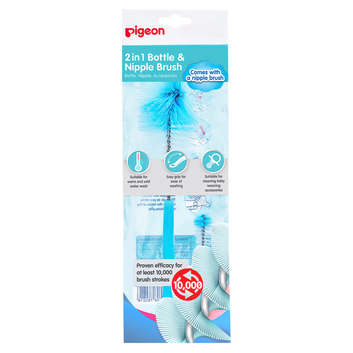 Pigeon 2 in 1 Bottle and Nipple Brush effectively cleans bottles, teats and accessories.