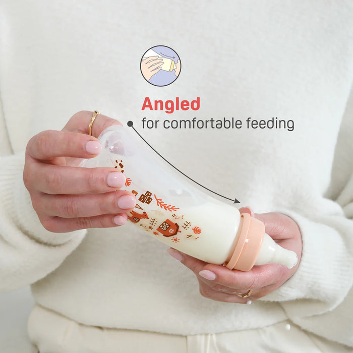 - Innovative Angled Shape: Designed for a comfortable feeding position, reducing wrist strain for mothers. Enhanced Stability: The unique shape provides better control and stability in your hands during feeding.