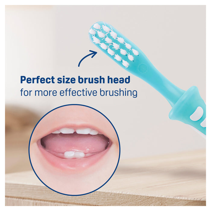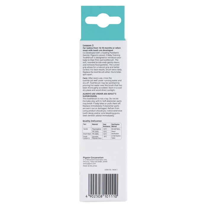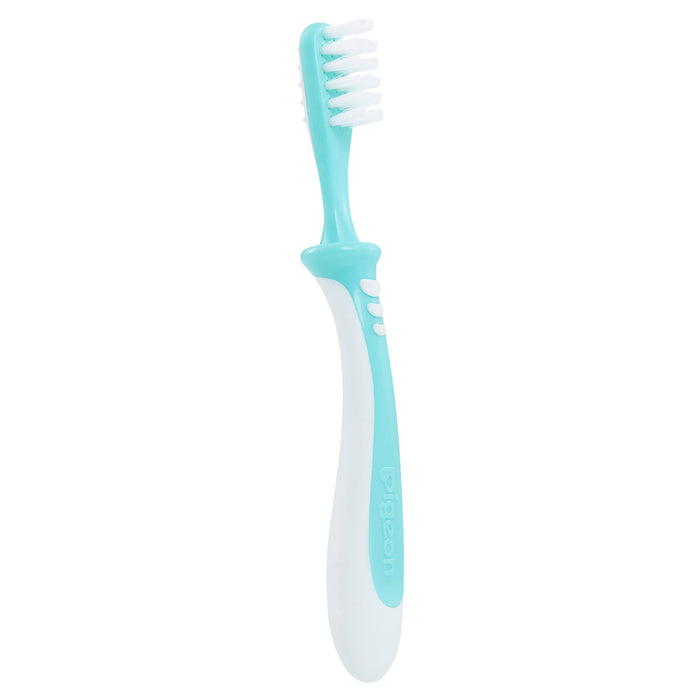 Pigeon Training Toothbrush Step 3 is a toothbrush for when most of the milk teeth are in and the infant is ready to try their first real toothbrush with toothpaste.