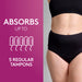 This absorbent underwear provides 4 layers of protection for trusted dryness, comfort and odour control making your protection invisible to you and everyone else. They absorb up to 60ml of fluid; the equivalent of 12 teaspoons or up to 5 regular tampons. Just wear, wash and wear again – up to 50 washes for peak performance.