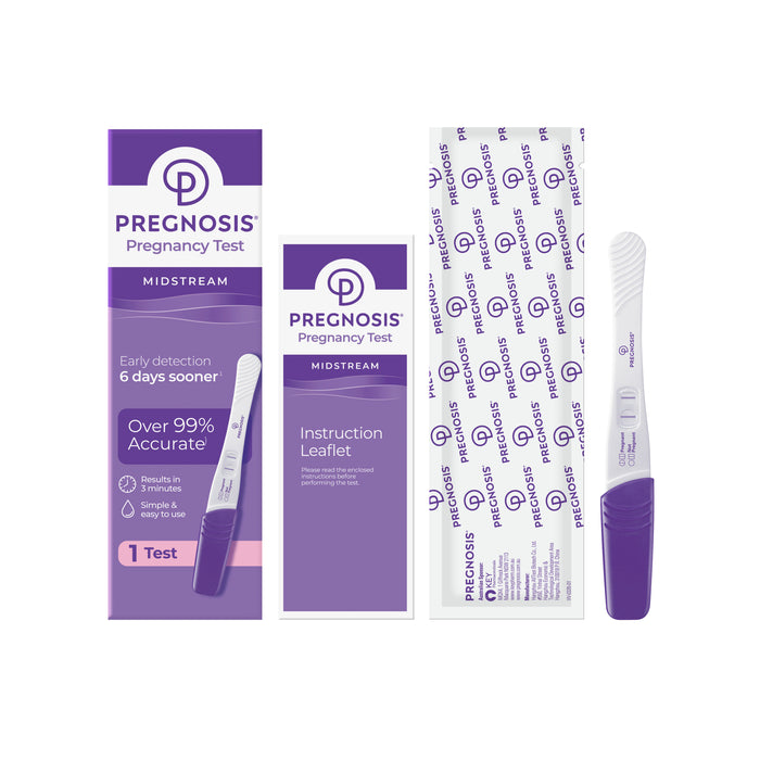 The Pregnosis Midstream Pregnancy Test detects pregnancy up to 6 days before your missed period (5 days before your expected period)¹. With over 99% accuracy² from 3 days before your expected period, it delivers reliable results when you need them most.