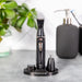 Includes storage stand, hair comb and cleaning brush