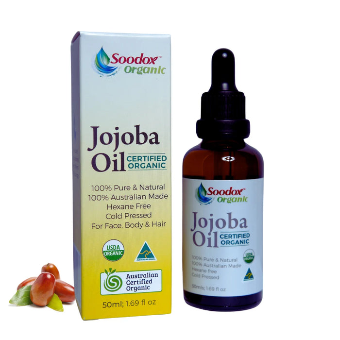 Soodox Organic Jojoba Oil is a natural and versatile beauty product. Extracted from organic simmondsia chinensis seeds, jojoba oil is rich in vitamin A, D, Omega 6 and 9 fatty acids known to nourish skin, hair, and nails.