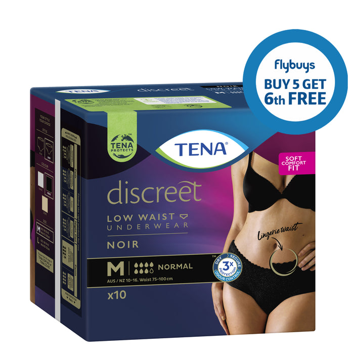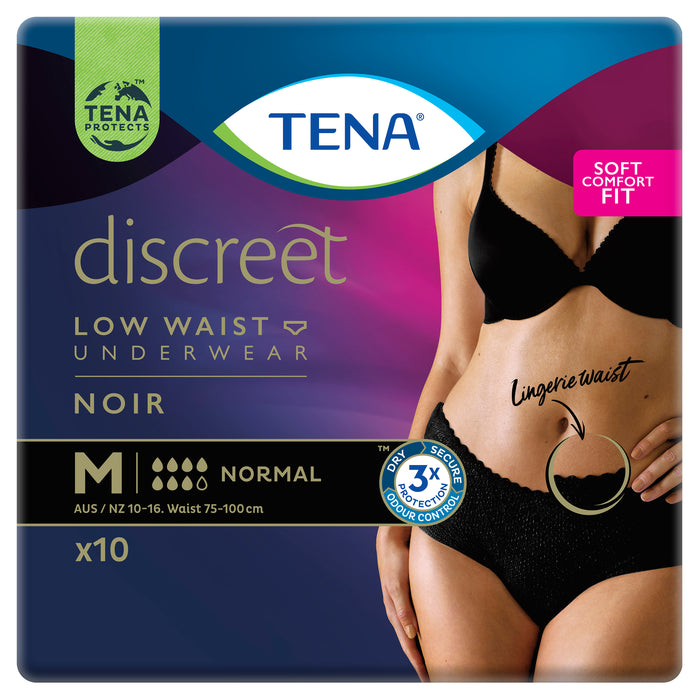 Tena Discreet Noir Low Waist Underwear Black Medium 10 Pk