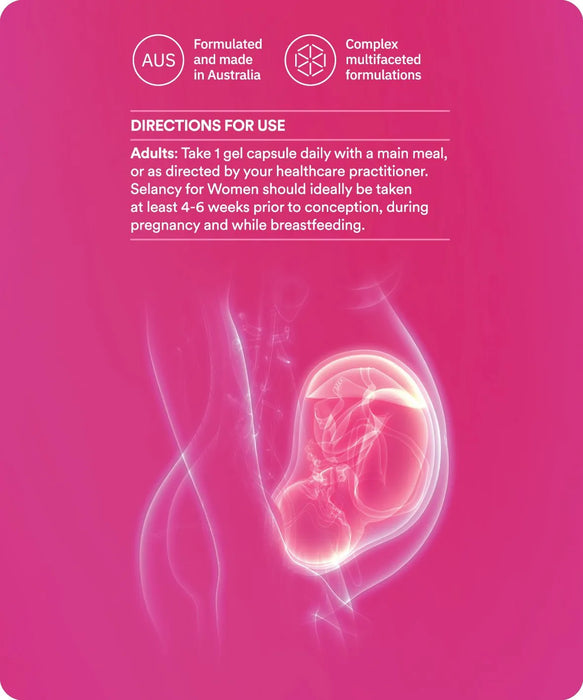 We focus on quality and better-absorbed ingredients at proven therapeutic doses. Selancy Women is an easy-to-take, once-daily liquid gel capsule specifically formulated with 20 essential nutrients.