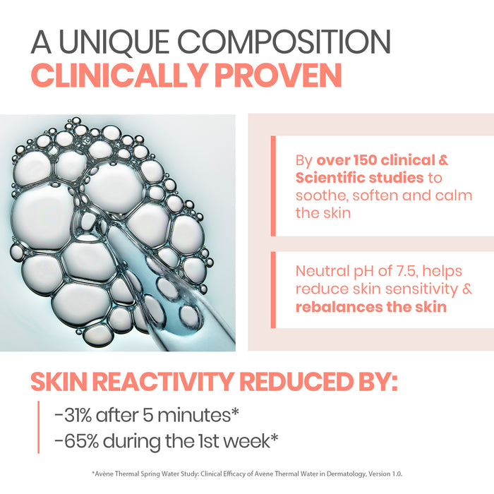 The unique and constant composition of Avène Thermal Spring Water gives it soothing and softening properties proven by numerous scientific studies. Tested by dermatologists, it provides soothing benefits for sensitive, hypersensitive and allergic skin.