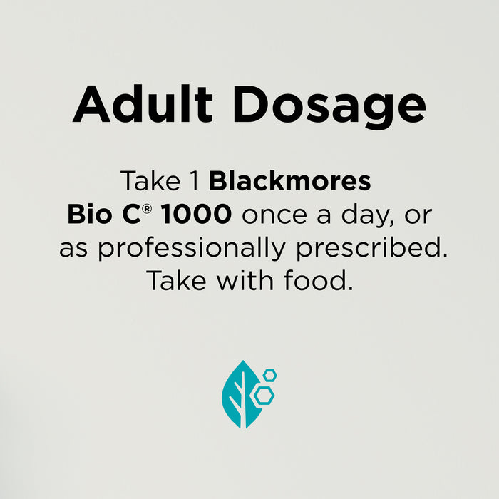 Reduce annoying cold symptoms with Blackmores Bio C® 1000 tablets. This one-a-day formula gives you a boost of vitamin C to reduce the severity and duration of the common cold. It’s buffered with mineral ascorbates to give you a vitamin C that’s gentle on the stomach. It also includes Vitamin C and bioflavonoids that work together to support the activity of Vitamin C. Support your immune system health with a convenient one-a-day Blackmores Bio C® 1000 tablet.
