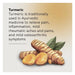 Turmeric is traditionally used in Ayurvedic medicine to relieve pain, inflammation, mild rheumatic aches and pains, and mild osteoarthritis symptoms. It’s also taken traditionally to relieve mild joint pain and as well as symptoms of soft tissue trauma in Chinese medicine.