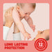• Leak lock system quickly draws moisture away and locks it into the core keeping baby dry