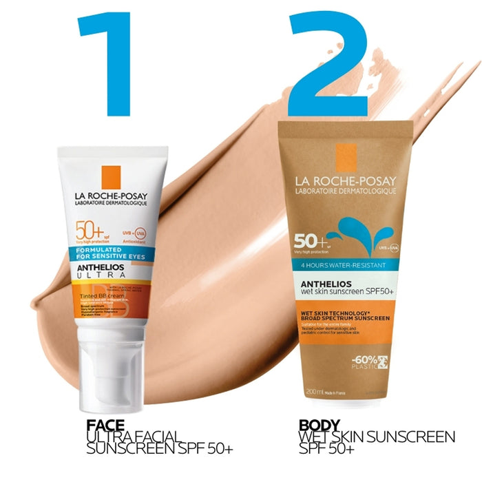 Anthelios Ultra Tinted BB Cream SPF50+ 50mL evens out your complexion, hydrates and provides very high SPF 50+ UVA/UVB protection for your face. This BB Cream has been specifically formulated for dry, sensitive skin. It is a lightweight cream that has a non-greasy, moisturising and nourishing texture, making it comfortable to wear every day. Anthelios Ultra Tinted BB Cream SPF50+ 50ml contains micro-pigments that melt into the skin, providing a universal tinted finish adapted to your skin tone. Containing chemical sunscreen filters as well as a physical sunscreen filter – titanium dioxide, it creates a physical barrier of protection on top of the skin to deflect and scatter damaging UV rays away. UV radiation is present every day of the year. Ensure your skin is protected from the damaging UV rays by integrating in your skincare routine a daily SPF 50+ BB cream that blocks both UVA and UVB rays. Anthelios Ultra BB Cream SPF50+ features a light but nourishing formulation that absorbs easily and is ultra-hydrating on the skin. Providing an even complexion, it is non-greasy and non sticky, enriched with La Roche-Posay Thermal Spring Water. Key Ingredients INTELLIGENT POLYMERS - For Even Coverage, A Non-Greasy Finish And High Resistance: A breakthrough ingredient in suncare. The polymers lock the oil within the formula in between micro-crystals. Not only does this make the formula non-greasy but these crystals group together to form a strong network of protection providing homogenous, non-migrating and very resistant protection. XL-PROTECT - Broad-Spectrum Protection Filter: A powerful blend of UV filters and anti-oxidants that goes above broad-spectrum UVA and UVB protection to shield against damage from other skin aggressors such as infrared and pollution. GLYCERIN - For Hydrated, Comfortable Skin: Glycerin helps to hydrate and moisturise the skin after initial application. Ingredients: AQUA / WATER • DIISOPROPYL SEBACATE • GLYCERIN • BIS-ETHYLHEXYLOXYPHENOL METHOXYPHENYL TRIAZINE • ALCOHOL DENAT • PROPANEDIOL • ETHYLHEXYL SALICYLATE • ETHYLHEXYL TRIAZONE • C12-22 ALKYL ACRYLATE/HYDROXYETHYLACRYLATE COPOLYMER • DROMETRIZOLE TRISILOXANE • BUTYL METHOXYDIBENZOYLMETHANE • ALUMINUM STARCH OCTENYLSUCCINATE • CI 77891 / TITANIUM DIOXIDE • SILICA • TOCOPHEROL • ISOPROPYL LAUROYL SARCOSINATE • ACRYLATES COPOLYMER • AMMONIUM ACRYLOYLDIMETHYLTAURATE/VP COPOLYMER • CAPRYLYL GLYCOL • CI 77491, CI 77492, CI 77499 / IRON OXIDES • CITRIC ACID • DISODIUM EDTA • SCUTELLARIA BAICALENSIS EXTRACT / SCUTELLARIA BAICALENSIS ROOT EXTRACT • T-BUTYL ALCOHOL • TEREPHTHALYLIDENE DICAMPHOR SULFONIC ACID • TRIETHANOLAMINE • XANTHAN GUM • PARFUM / FRAGRANCE (C211249/1) Please be aware that ingredient lists for the products of our brand are updated regularly. Please refer to the ingredient list on your product package for the most up to date list of ingredients to ensure it is suitable to your personal use.